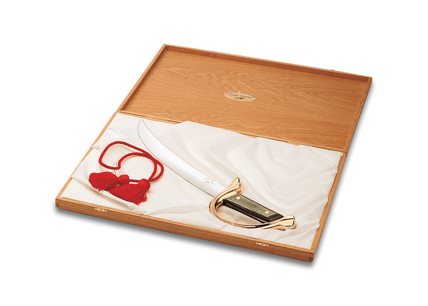 Avec la collection Prestige, c’est l’élégance à la française que vous mettez en avant quand vous sabrez une bouteille. Inspiré par les sabres des généraux napoléoniens ce sabre dispose d’une garde massive dorée ou argentée. Elle protège une épaisse poignée en bois teinté ou bien en marqueterie pour le plus luxueux, chacune des couleurs rappelant le nom d’un des généraux. Associée à la large lame au tranchant non affuté, vous ne vous tromperez pas de bataille et serez à coup sûr vainqueur, sous les applaudissements de vos invités ! Le sabre se présente dans un très beau coffret en chêne massif, réalisé pour lui, sur mesure. Prenez-le en main, sortez le du coffret et sabrez !