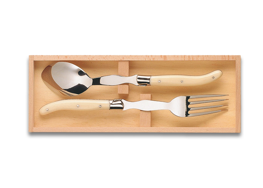 Une feuille, deux feuilles, trois feuilles… avec ou sans sauce… ? Dans tous les cas il vous faudra une cuillère et une fourchette dédiées pour servir ces quelques feuilles bienvenues en début ou fin de repas avec le fromage. La Maison Claude DOZORME vous propose un bel assortiment de ces ustensiles très utiles, dans les collections Laguiole et Berlingot. Pensez-y au moment de faire un cadeau ! Au fait, la salade, c’est aussi la salade de fruit et ces couverts feront également merveille.