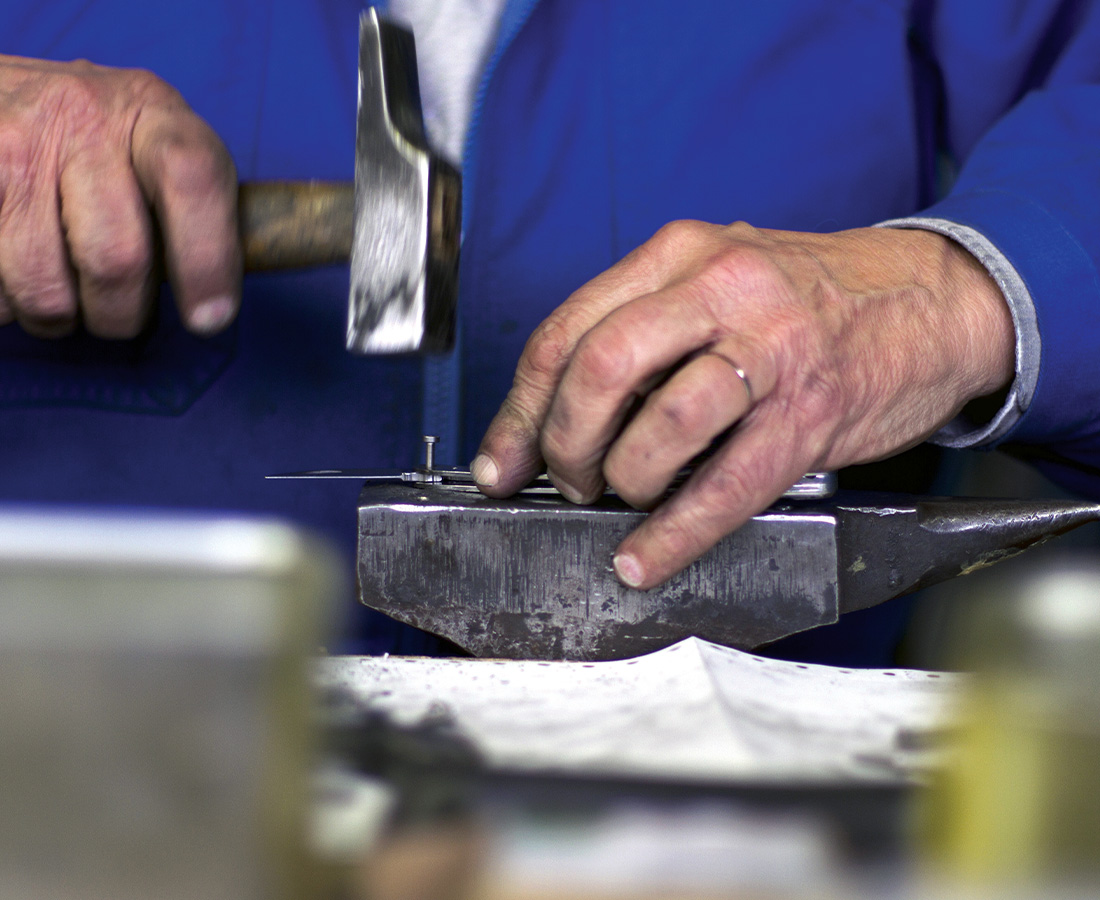 De la découpe laser à l’affutage des lames via le façonnage des manches ou le guillochage, pas moins d’une quarantaine d’étapes sont nécessaires pour réaliser un couteau Claude DOZORME, étapes restées inchangées depuis plus d’un siècle.