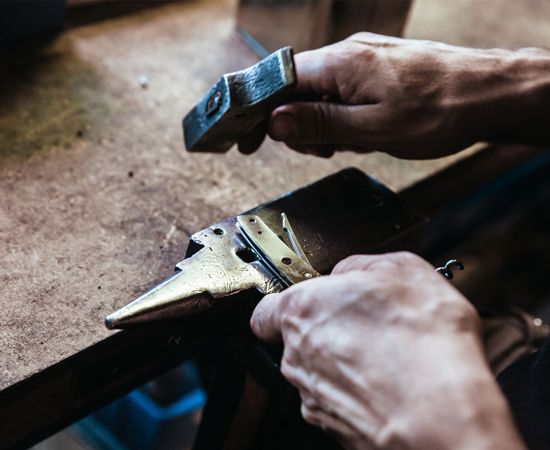 Après une sélection rigoureuse des meilleurs matériaux, les couteaux Claude DOZORME sont intégralement fabriqués dans les ateliers de la manufacture, à proximité de THIERS. De la découpe laser à l’affutage des lames en passant par le façonnage des manches ou le guillochage des ressorts, pas moins d’une quarantaine d’étapes sont nécessaires pour réaliser un couteau Claude DOZORME, étapes restées inchangées depuis plus d’un siècle.