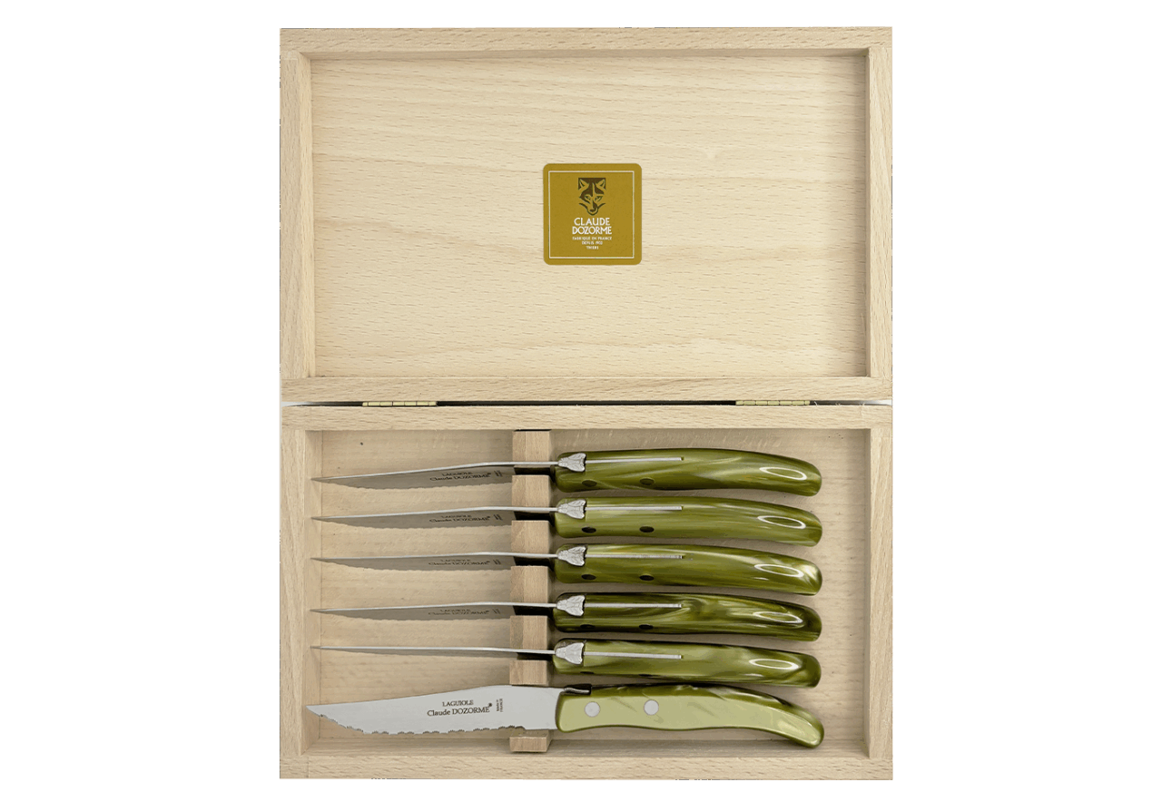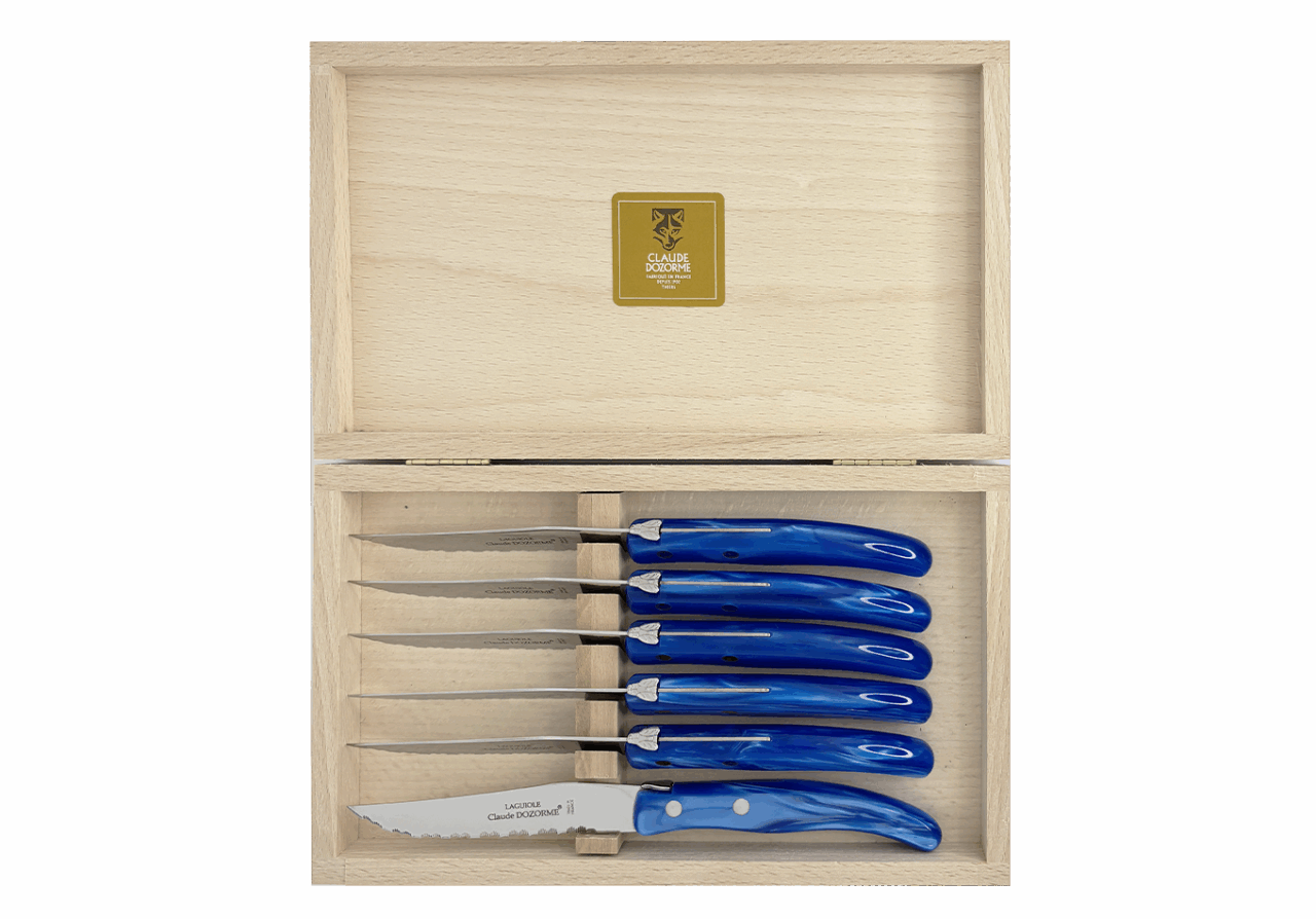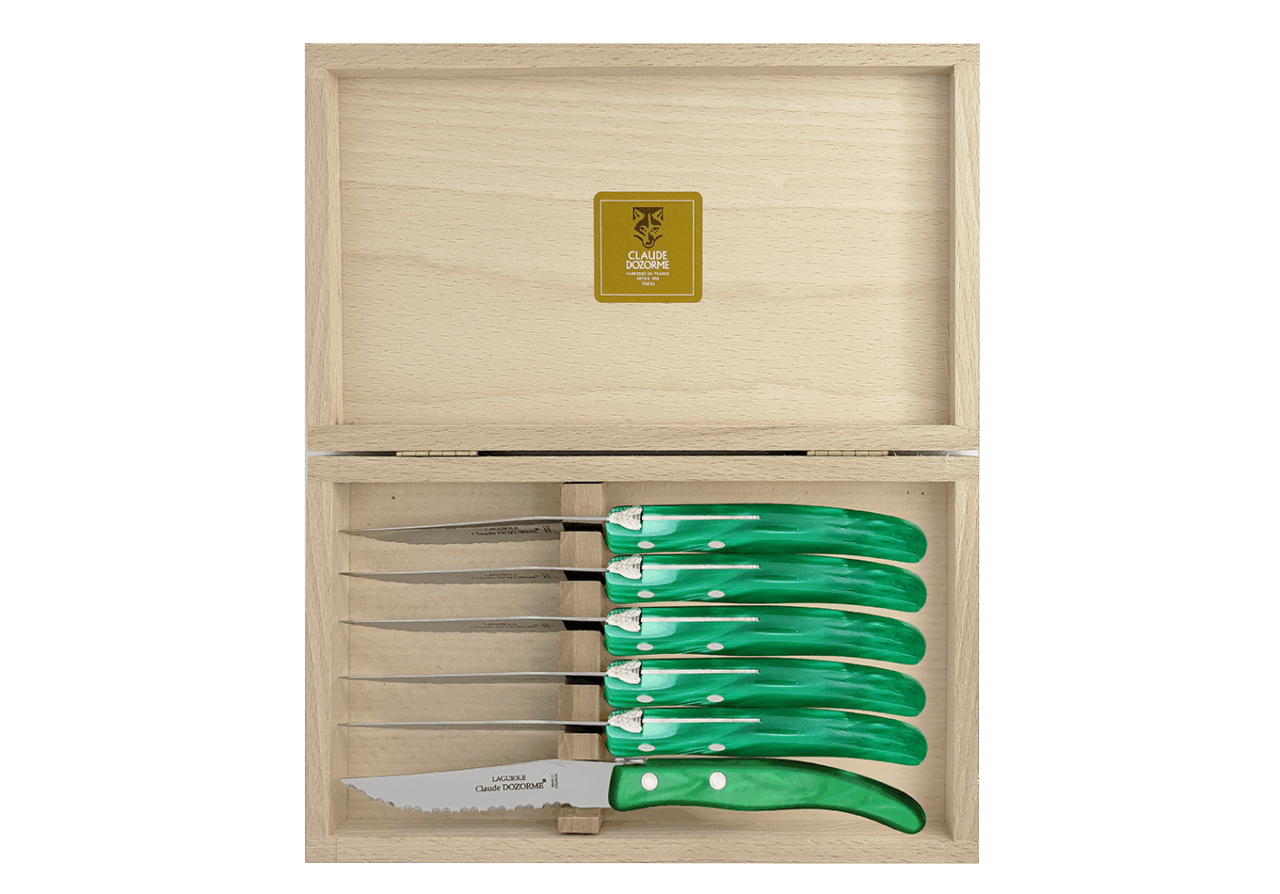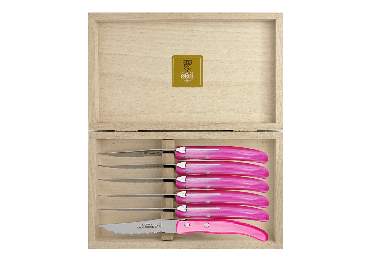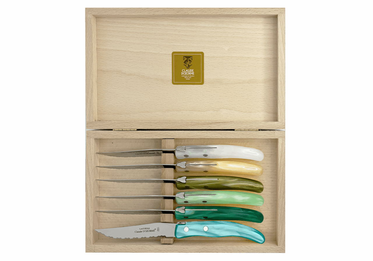 Dans une profusion de couleurs une dizaine de couteaux vous attendent pour préparer vos plats. Vous passez à table, quelle chance ! Les couverts et les services sont assortis ! Avec ce best-seller de la Maison Claude DOZORME, vous faites le choix de la gaieté, en cuisine comme à table, à un prix très doux et toujours avec la qualité « fabriqué en France ».