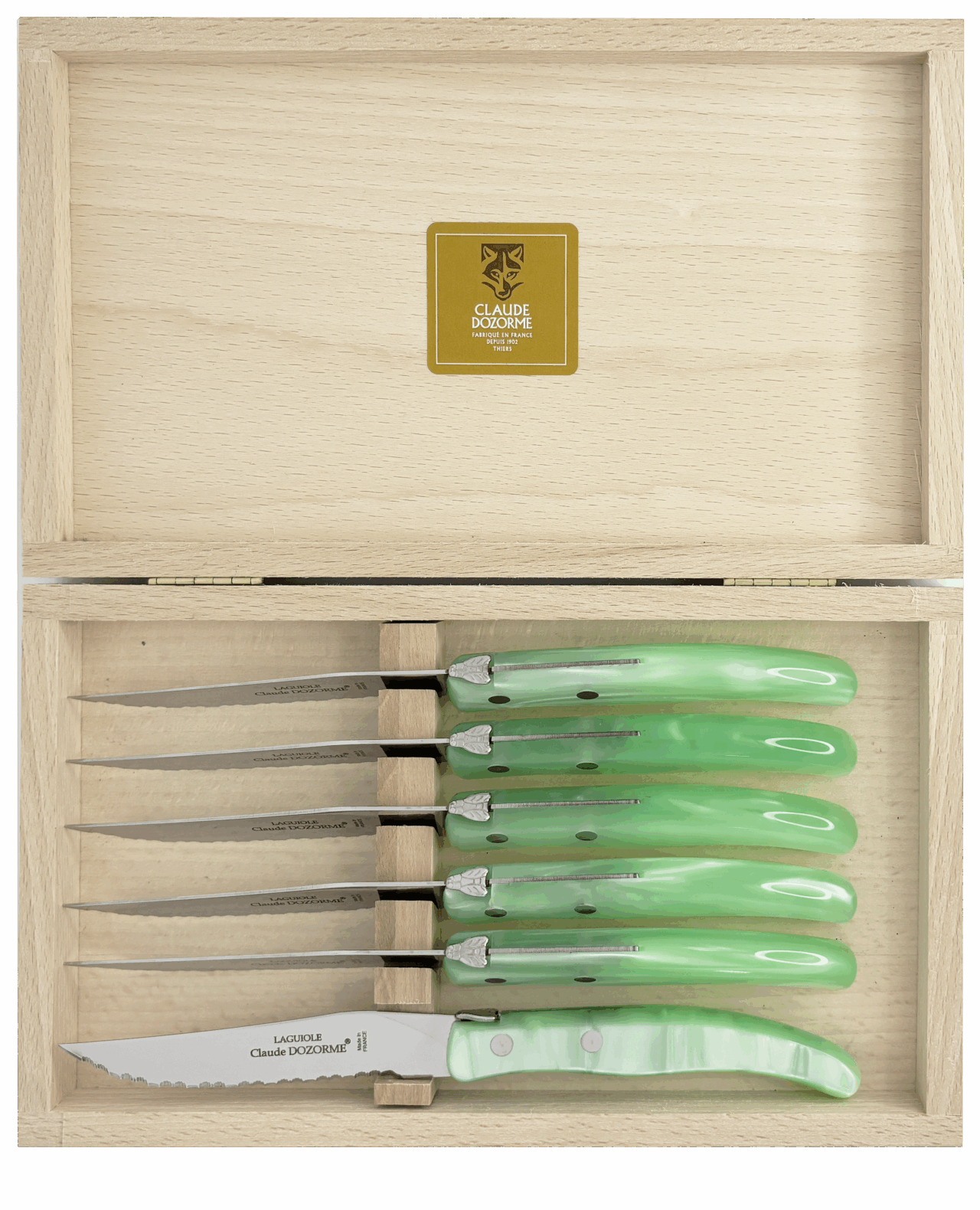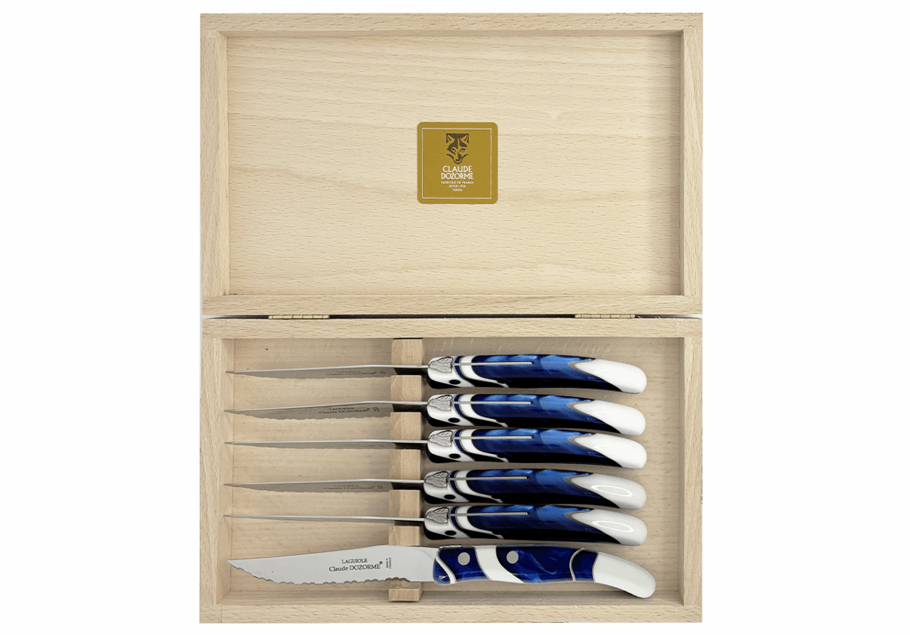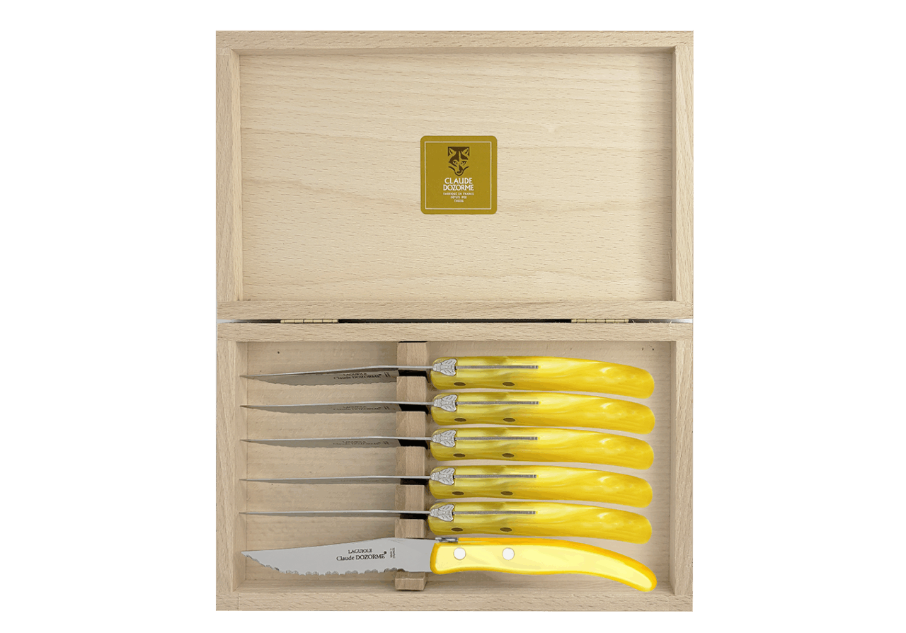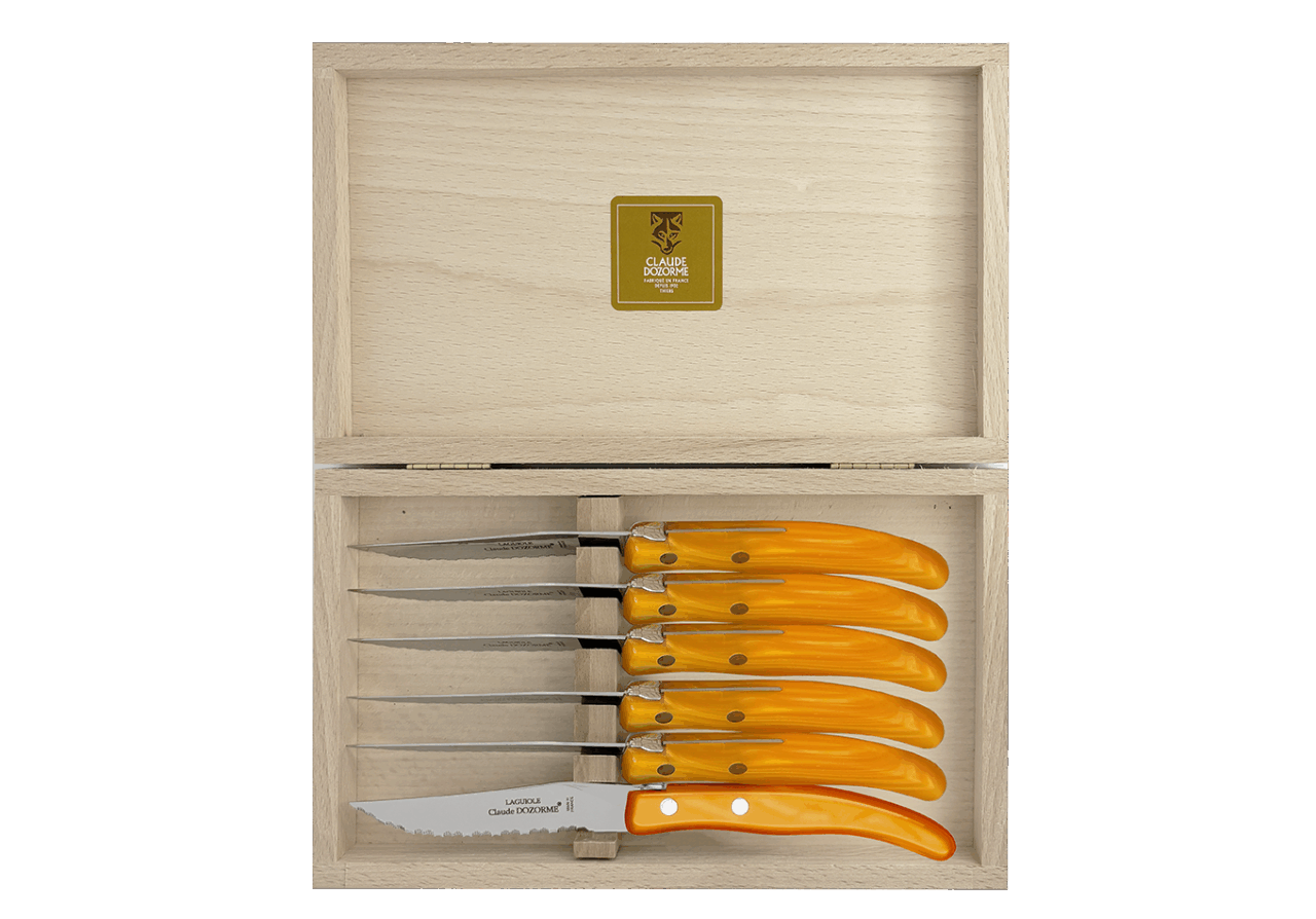 Dans une profusion de couleurs une dizaine de couteaux vous attendent pour préparer vos plats. Vous passez à table, quelle chance ! Les couverts et les services sont assortis ! Avec ce best-seller de la Maison Claude DOZORME, vous faites le choix de la gaieté, en cuisine comme à table, à un prix très doux et toujours avec la qualité « fabriqué en France ».