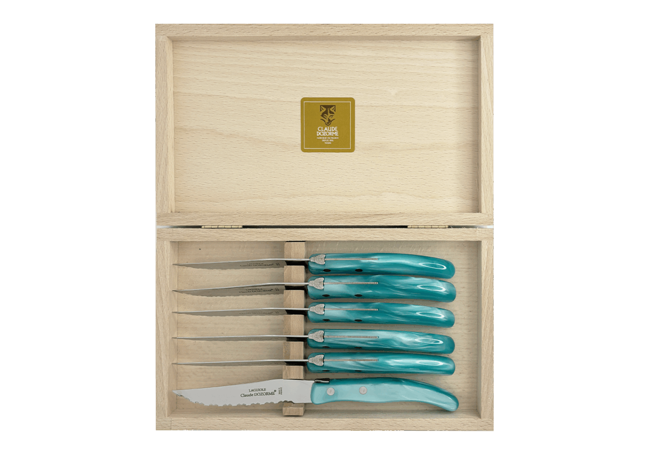 Le couteau Berlingot est conçu pour un usage quotidien et passe au lave-vaisselle. La microdenture de la lame des couteaux à steak est faite manuellement. Fine et précise, cette microdenture est extrêmement tranchante, et ne déchire pas la viande. N’hésitez pas à mélanger les couleurs avec les panachés Claude DOZORME. Notre gamme Berlingot apporte de la couleur dans votre cuisine et sur vos tables.