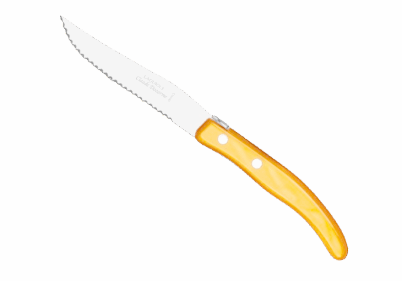 Le couteau Berlingot est conçu pour un usage quotidien et passe au lave-vaisselle. La microdenture de la lame des couteaux à steak est faite manuellement. Fine et précise, cette microdenture est extrêmement tranchante, et ne déchire pas la viande. Notre gamme Berlingot apporte de la couleur dans votre cuisine et sur vos tables.