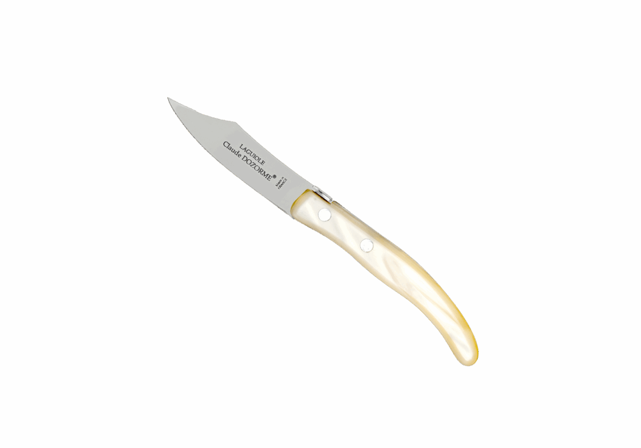 La lame demi-soie en acier spécial haut de gamme X50CV13, garantit un excellent tranchant, une grande tenue de coupe. Fabrication 100 % française dans nos ateliers à Thiers.