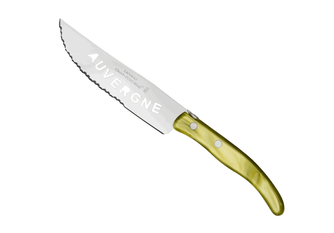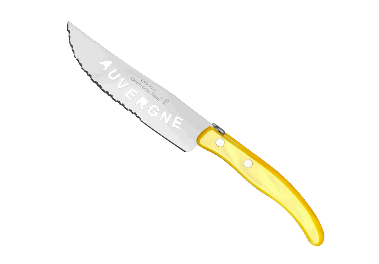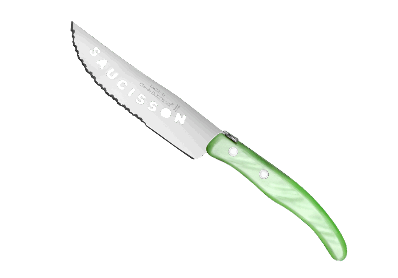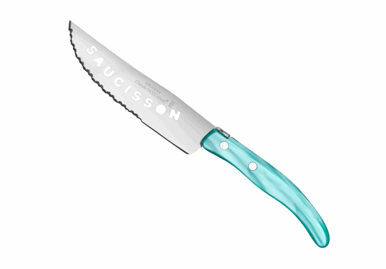 Le couteau à saucisson Berlingot est conçu pour un usage quotidien et passe au lave-vaisselle. La microdenture facilite la découpe du saucisson, ce qui vous permet de couper de belles tranches régulières et nettes. La microdenture de la lame du couteau à saucisson est faite manuellement. Le plus ? Des trous sur la lame forment le mot saucisson ou Auvergne, au choix ! Estéthique mais aussi utile, ce creux évite que le saucisson colle. Notre gamme Berlingot apporte de la couleur dans votre cuisine et sur vos tables.