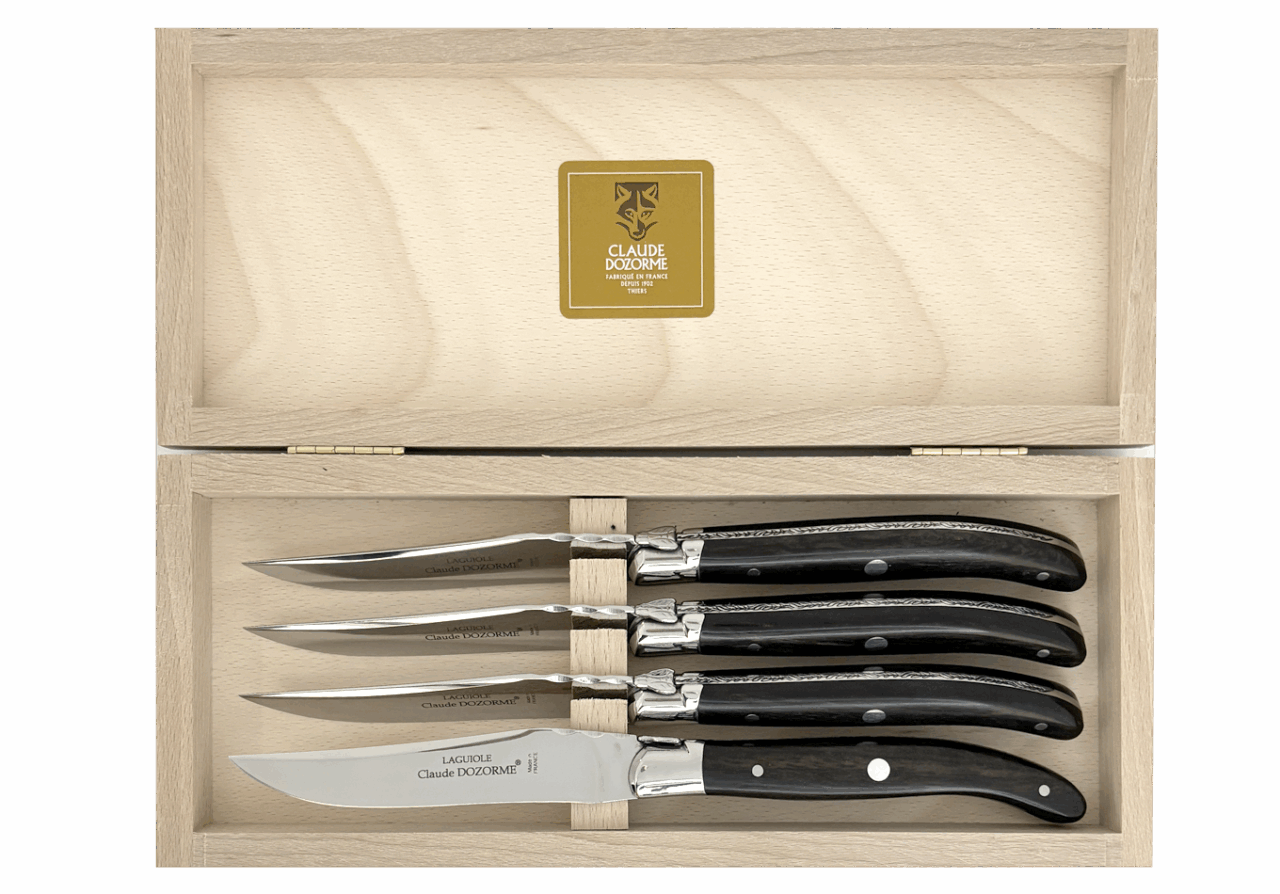Claude DOZORME fut le premier fabricant français à adapter ce couteau mythique à la table avec une lame fixe. Il occupe aujourd’hui une place centrale dans l’univers Table de notre Maison. Avec un design distinctif signé Claude DOZORME, cette icône du couteau est sans cesse améliorée et renouvelée dans nos ateliers, avec toujours la même qualité irréprochable. Ce Laguiole ne craint aucune concurrence !