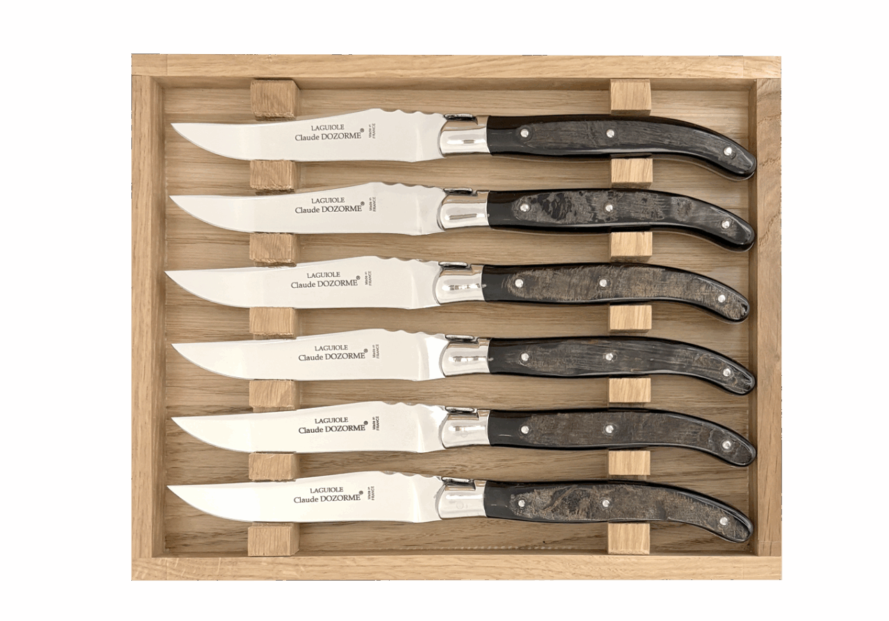 Claude DOZORME fut le premier fabricant français à adapter ce couteau mythique à la table avec une lame fixe. Il occupe aujourd’hui une place centrale dans l’univers Table de notre Maison. Avec un design distinctif signé Claude DOZORME, cette icône du couteau est sans cesse améliorée et renouvelée dans nos ateliers, avec toujours la même qualité irréprochable. Ce Laguiole ne craint aucune concurrence !