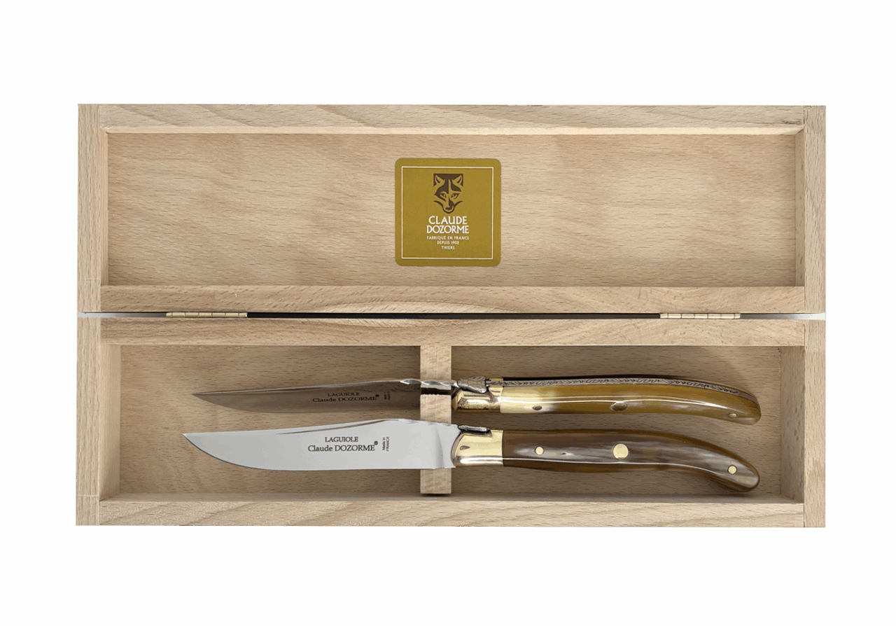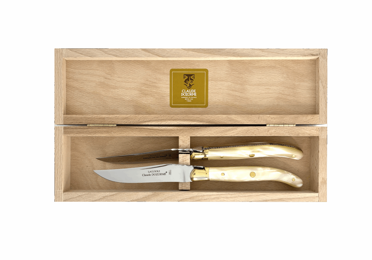 Claude DOZORME fut le premier fabricant français à adapter ce couteau mythique à la table avec une lame fixe. Il occupe aujourd’hui une place centrale dans l’univers Table de notre Maison. Avec un design distinctif signé Claude DOZORME, cette icône du couteau est sans cesse améliorée et renouvelée dans nos ateliers, avec toujours la même qualité irréprochable. Ce Laguiole ne craint aucune concurrence !