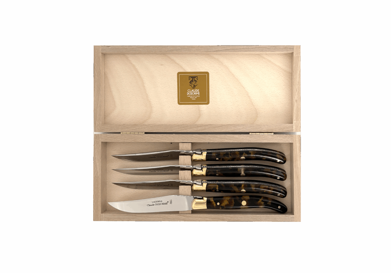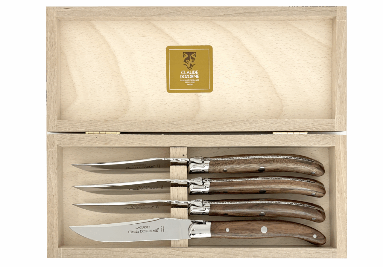 Claude DOZORME fut le premier fabricant français à adapter ce couteau mythique à la table avec une lame fixe. Il occupe aujourd’hui une place centrale dans l’univers Table de notre Maison. Avec un design distinctif signé Claude DOZORME, cette icône du couteau est sans cesse améliorée et renouvelée dans nos ateliers, avec toujours la même qualité irréprochable. Ce Laguiole ne craint aucune concurrence !
