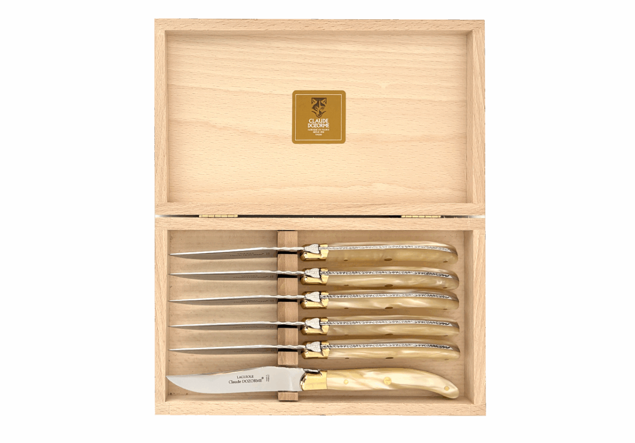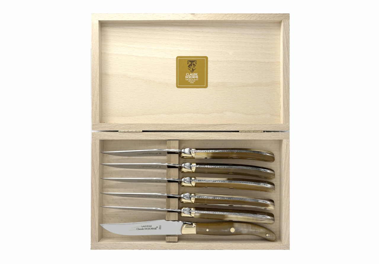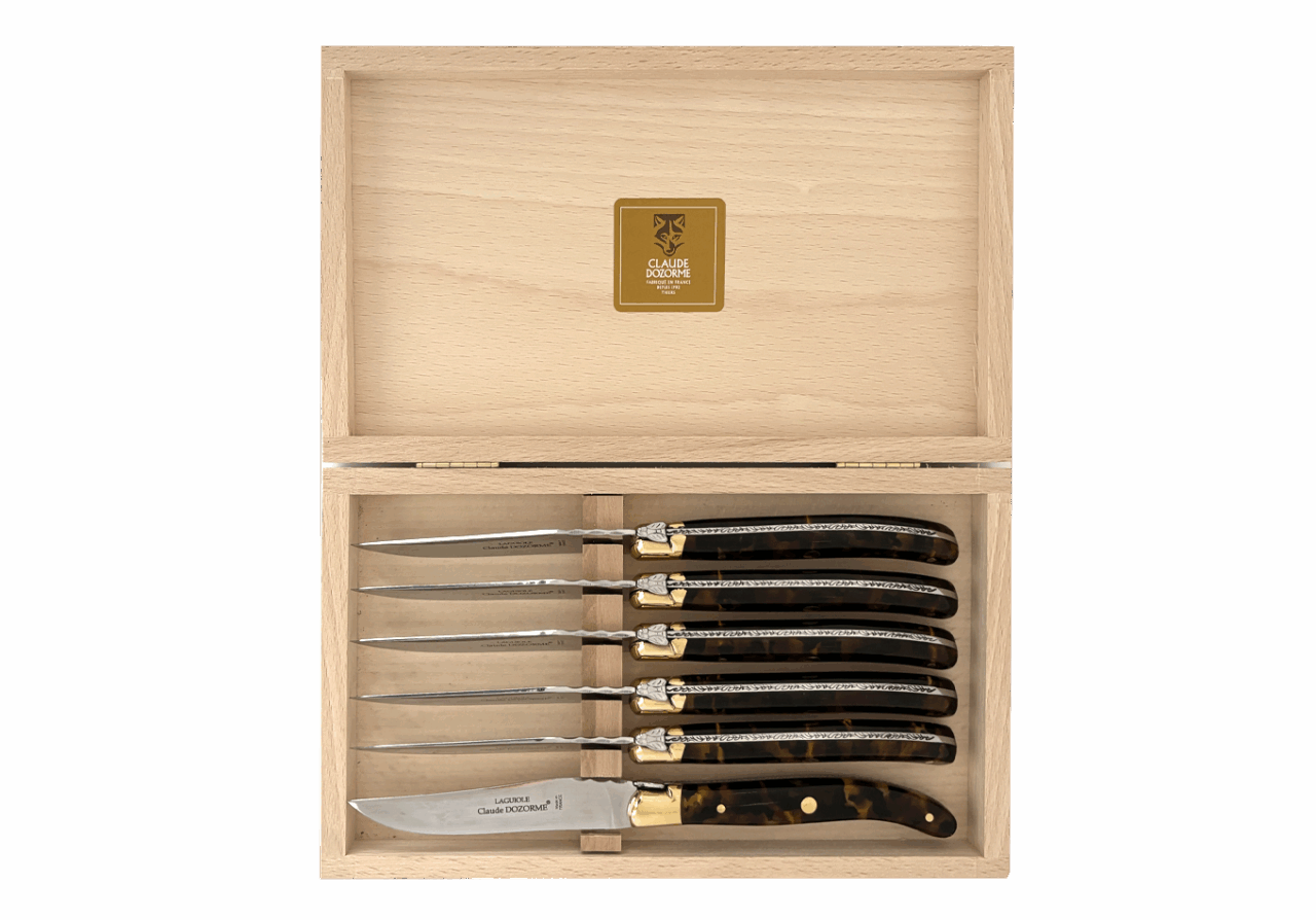 Claude DOZORME fut le premier fabricant français à adapter ce couteau mythique à la table avec une lame fixe. Il occupe aujourd’hui une place centrale dans l’univers Table de notre Maison. Avec un design distinctif signé Claude DOZORME, cette icône du couteau est sans cesse améliorée et renouvelée dans nos ateliers, avec toujours la même qualité irréprochable. Ce Laguiole ne craint aucune concurrence !