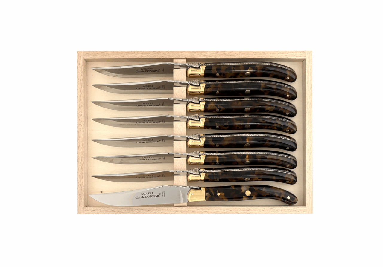 Claude DOZORME fut le premier fabricant français à adapter ce couteau mythique à la table avec une lame fixe. Il occupe aujourd’hui une place centrale dans l’univers Table de notre Maison. Avec un design distinctif signé Claude DOZORME, cette icône du couteau est sans cesse améliorée et renouvelée dans nos ateliers, avec toujours la même qualité irréprochable. Ce Laguiole ne craint aucune concurrence !
