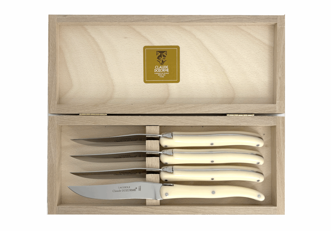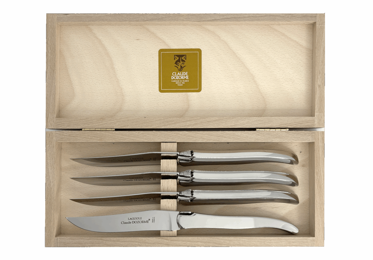 Claude DOZORME fut le premier fabricant français à adapter ce couteau mythique à la table avec une lame fixe. Il occupe aujourd’hui une place centrale dans l’univers Table de notre Maison. Avec un design distinctif signé Claude DOZORME, cette icône du couteau est sans cesse améliorée et renouvelée dans nos ateliers, avec toujours la même qualité irréprochable. Ce Laguiole ne craint aucune concurrence !
