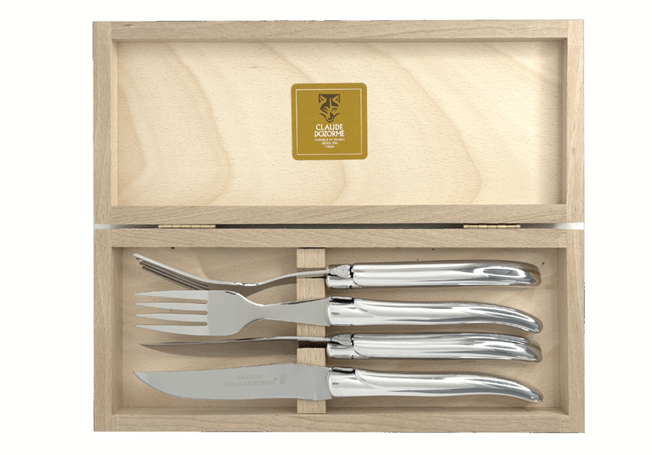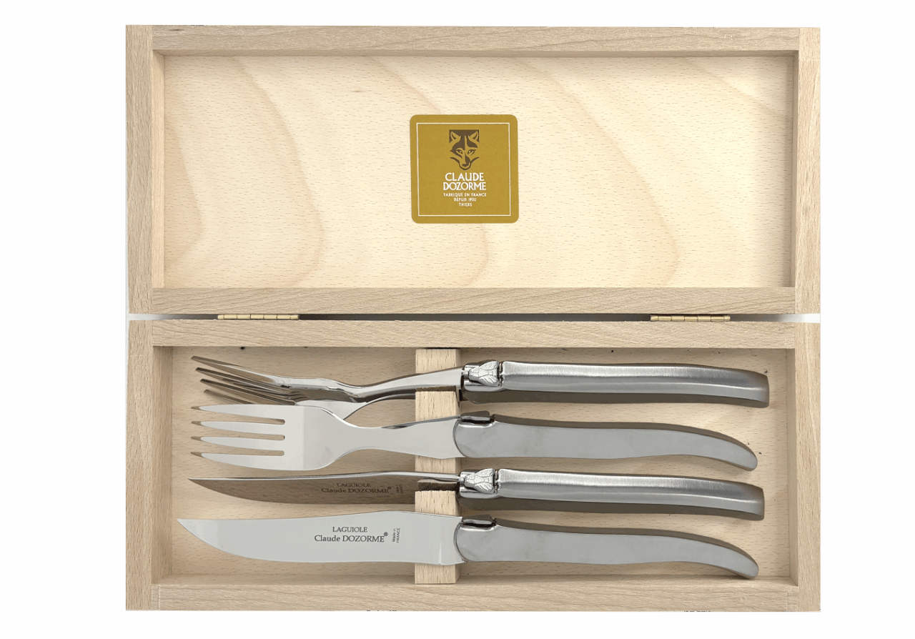 Claude DOZORME fut le premier fabricant français à adapter ce couteau mythique à la table avec une lame fixe. Il occupe aujourd’hui une place centrale dans l’univers Table de notre Maison. Avec un design distinctif signé Claude DOZORME, cette icône du couteau est sans cesse améliorée et renouvelée dans nos ateliers, avec toujours la même qualité irréprochable. Ce Laguiole ne craint aucune concurrence !