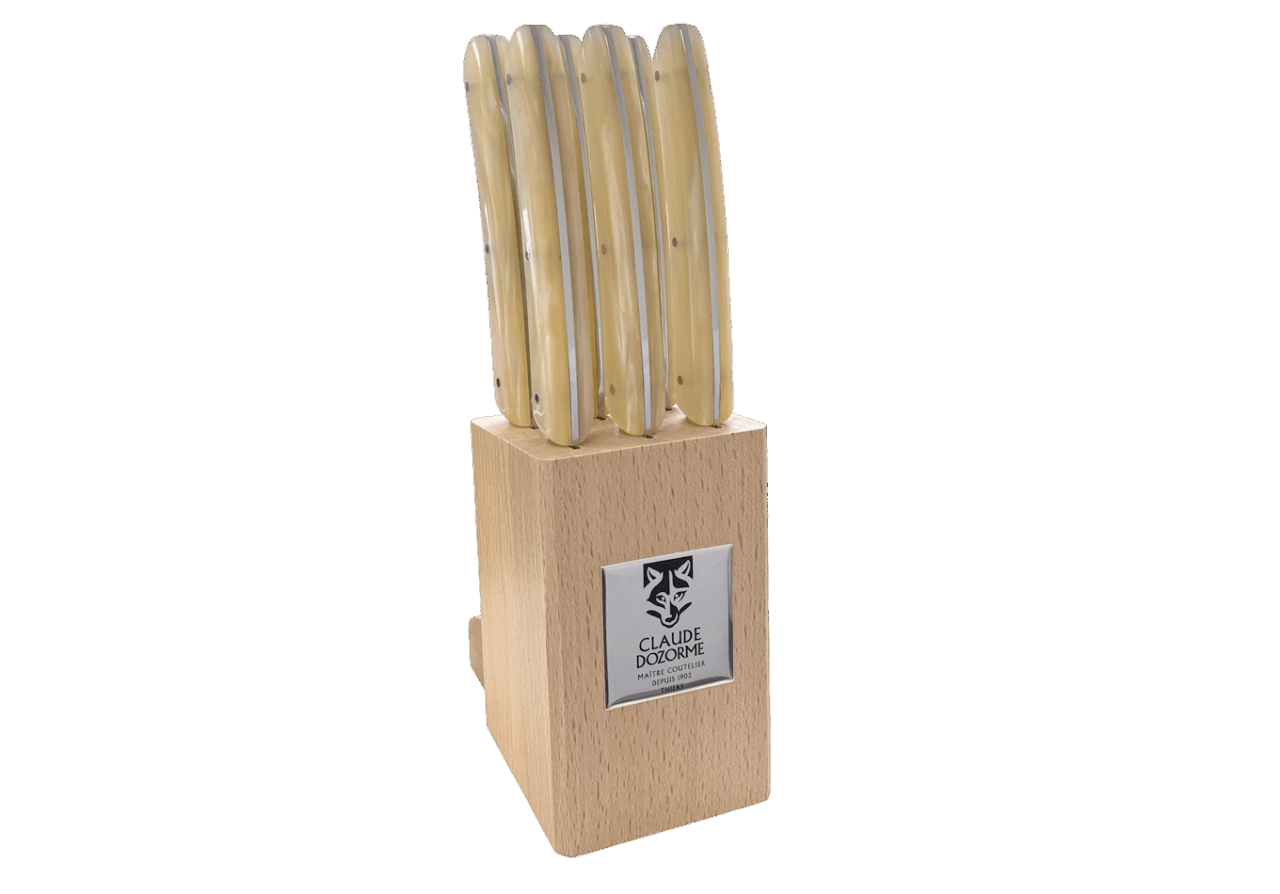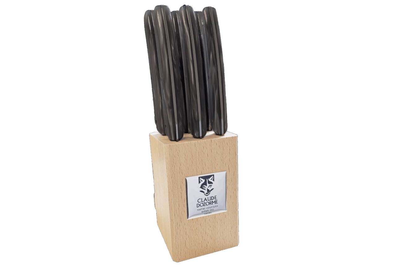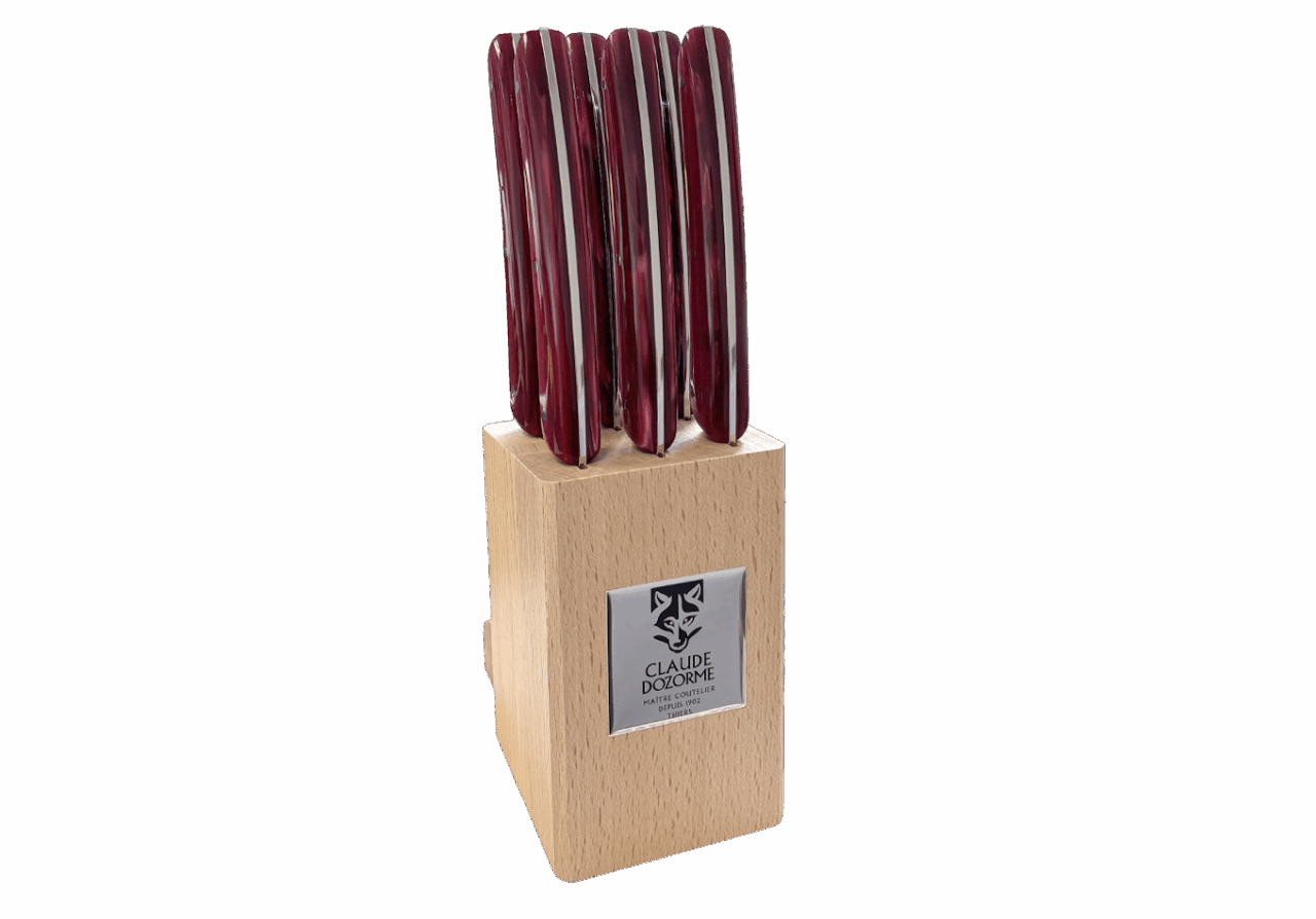 Disponible dans un Bloc hêtre de 6 couteaux, idéal pour offrir ou s’offrir.
