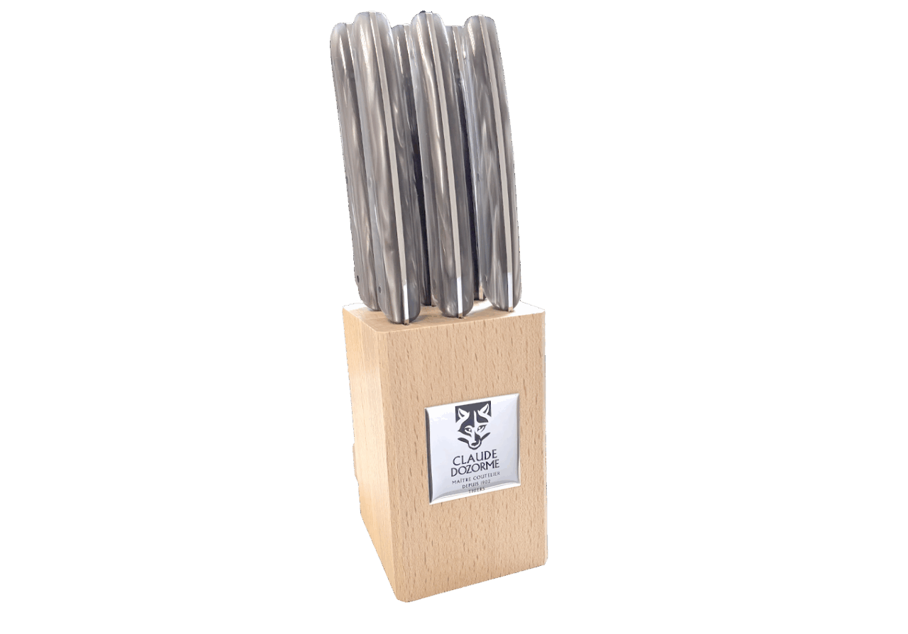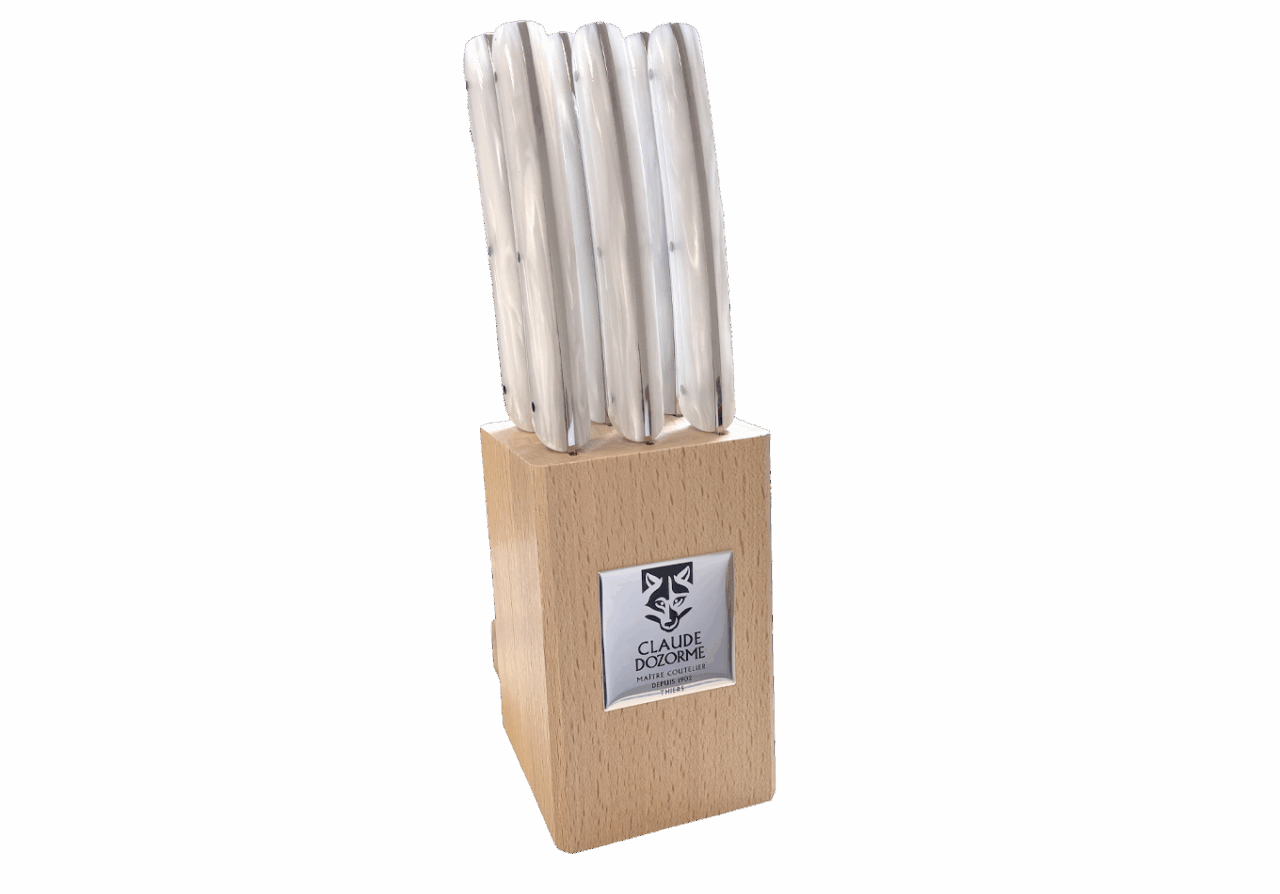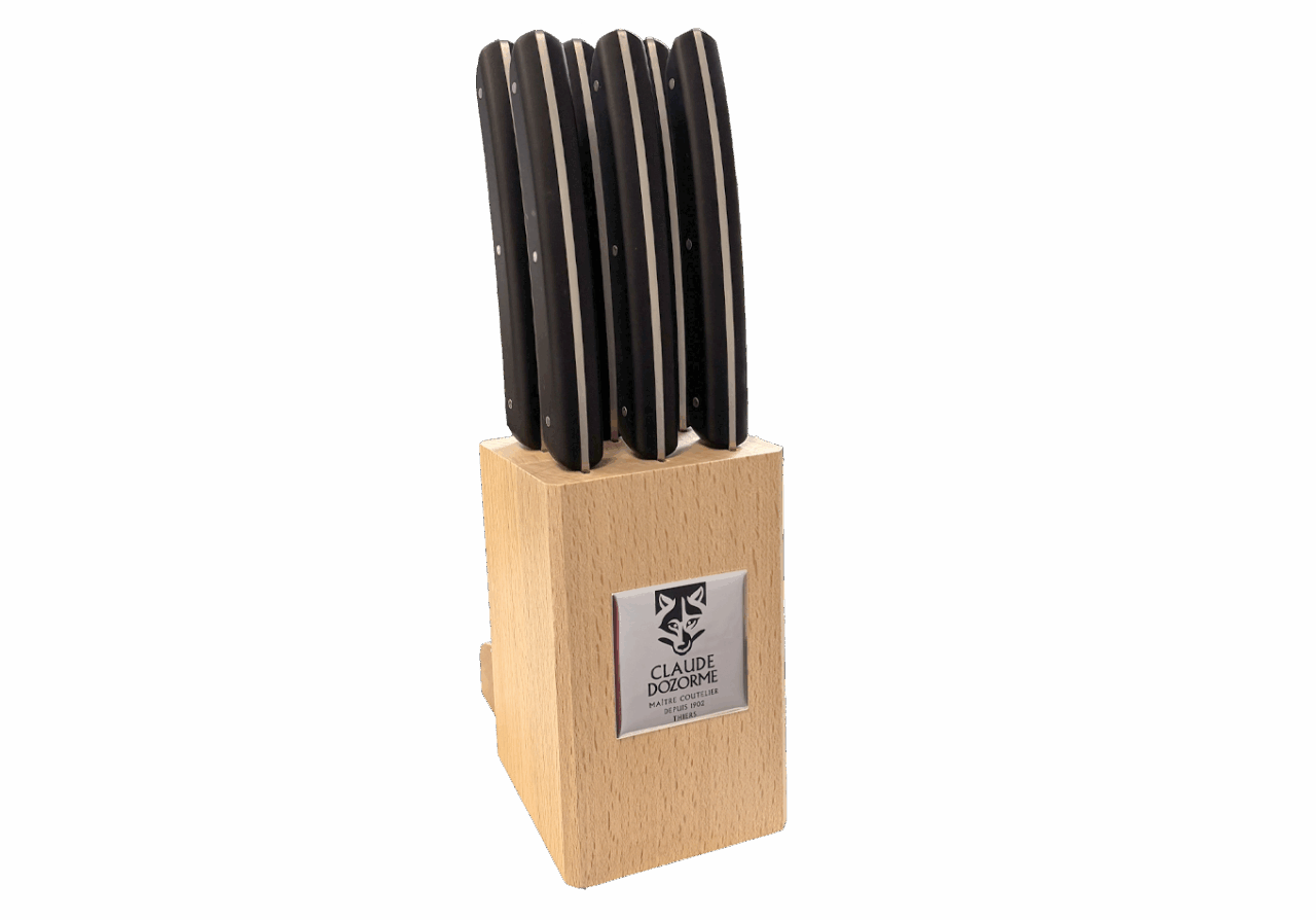 Disponible dans un Bloc hêtre de 6 couteaux, idéal pour offrir ou s’offrir.