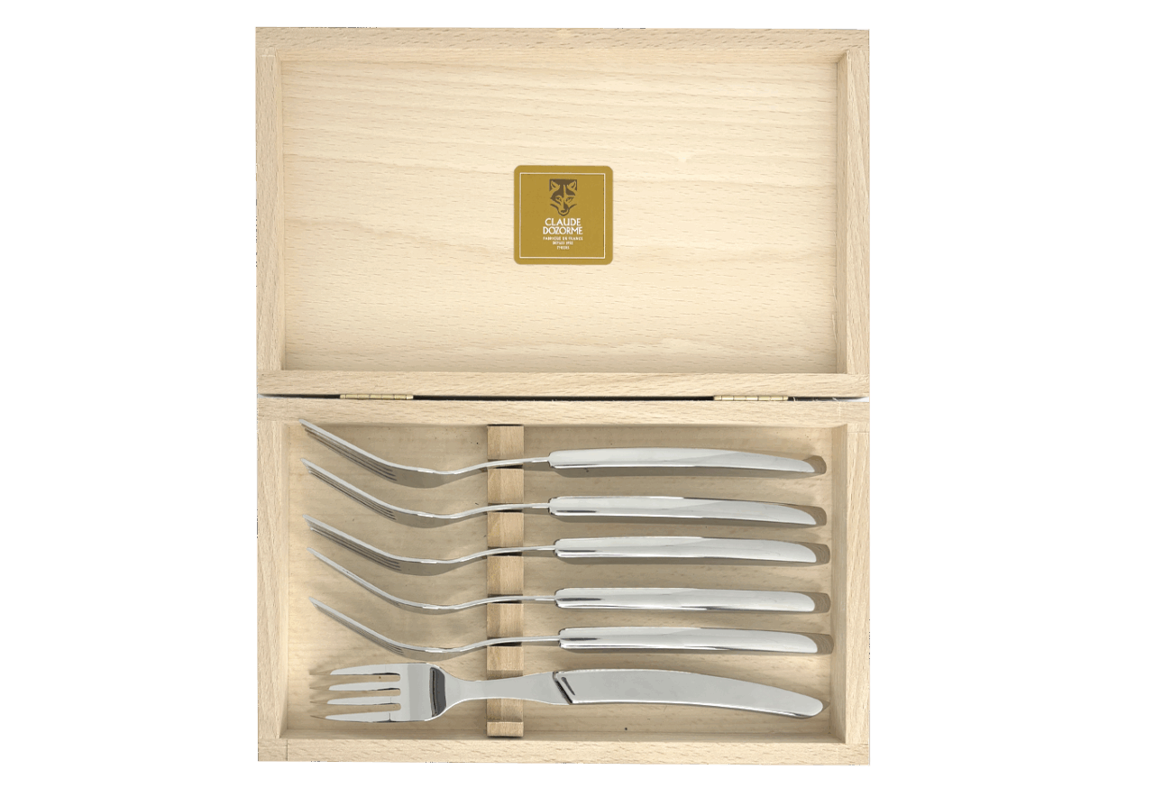 Disponible dans un Coffret hêtre de 6 fourchettes, idéal pour offrir ou s’offrir.