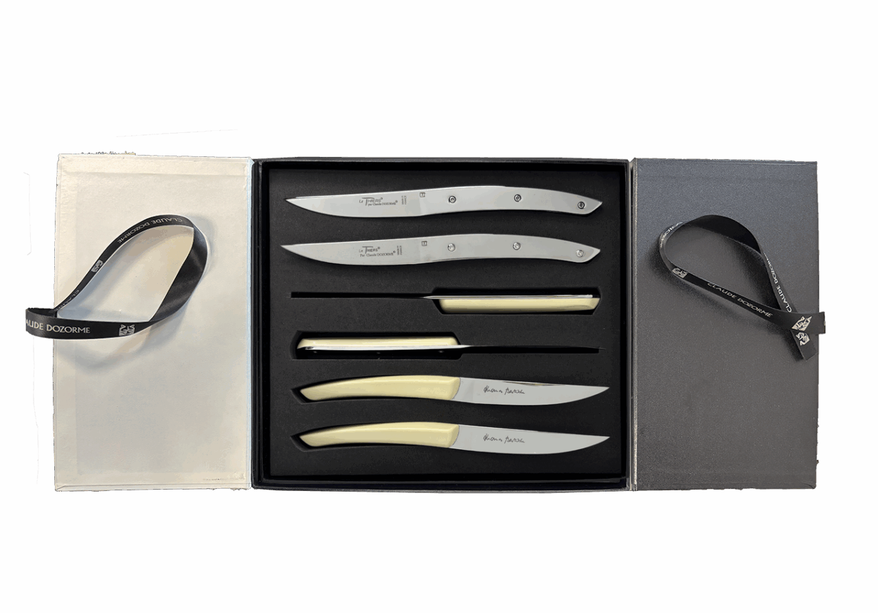Poussant la création encore plus loin, Thomas BASTIDE a mis à nu l'élément essentiel du couteau, sa lame, pour en révéler son âme. Ainsi est né l'Âme, modèle emblématique de la Maison Claude DOZORME. Sur votre table, il est le signe de l'essentiel, associé à l'élégance intemporelle dans sa plus simple expression, pour ne laisser voir que la lame.