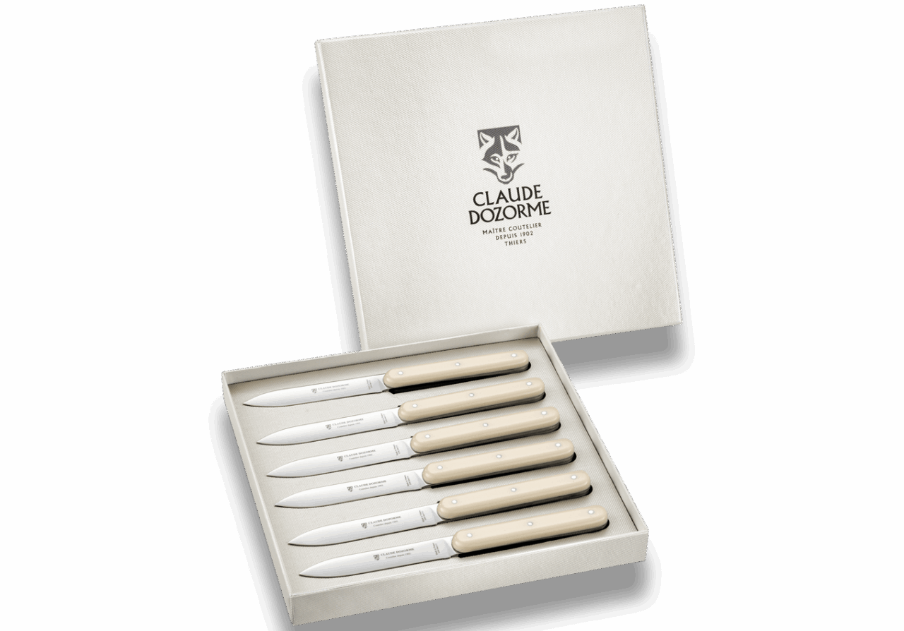Pure création de la Maison DOZORME, le Navette 6.16 trouve naturellement sa place dans la gamme Table de la Maison Claude DOZORME. Avec sa ligne droite et contemporaine, son manche épais habillé de matières nobles ou pratiques, il vous invite à passer à table avec élégance et à prolonger indéfiniment le plaisir de s'en servir.