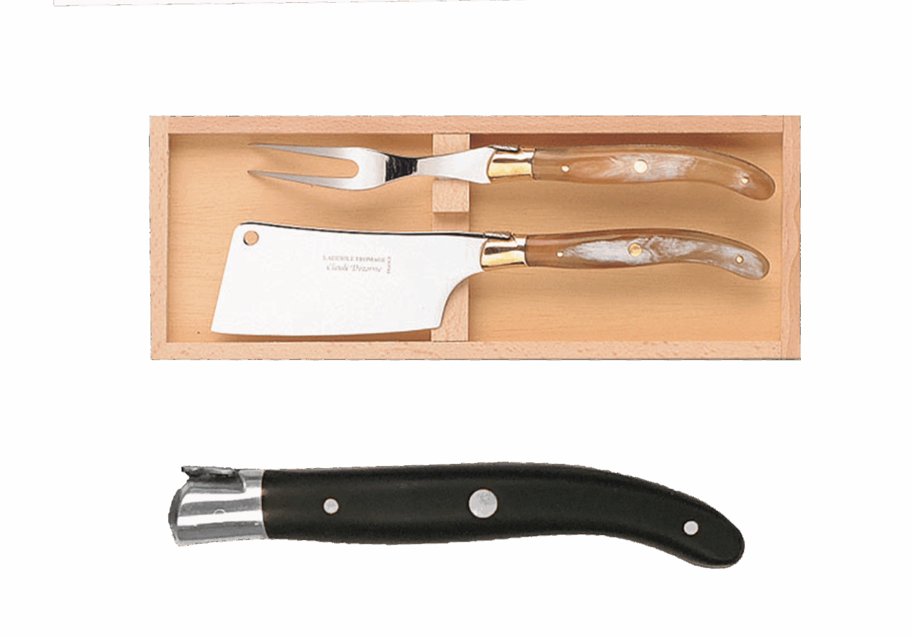 Le monde entier nous envie notre plateau de fromages richement garni ! On va aussi nous envier nos couteaux ! Typiquement français, ce moment du repas n’a pas échappé au savoir-faire du Maître Coutelier, qui propose une grande sélection de modèles. Du couteau droit au célèbre « Deux Piques », en passant par le couperet associé à une fourchette, jusqu’à la pochette de sept pièces composée en collaboration avec un MOF* fromager et utilisée dans les meilleurs restaurants, vous aurez le choix.